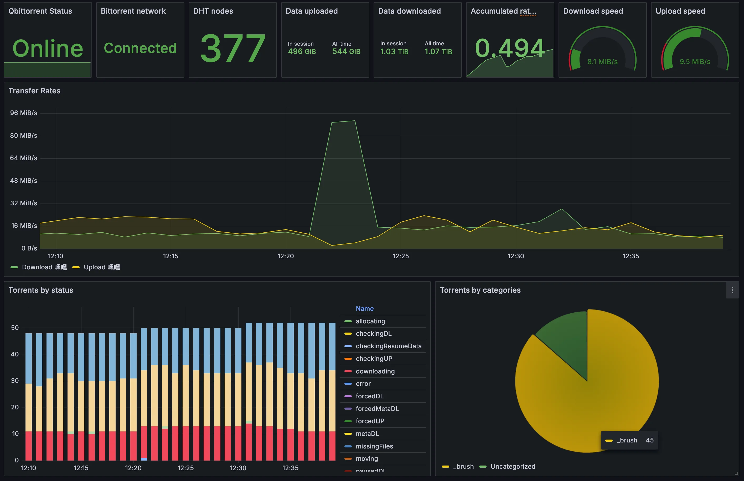 因为提供的盒子没有权限安装软件,所以我的做法是本地起一个定时拉取 qbitorrent 数据的服务,然后通过 alloy 把抓取的数据推送给 prometheus。 这个定时拉取的工具是 prometheus-qbittorrent-exporter